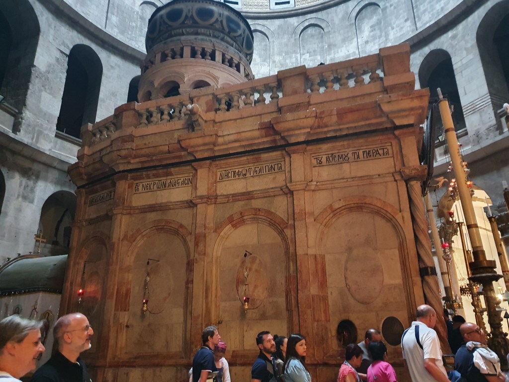 Dai romani, agli arabi, dai crociati ai turchi, tutti quelli che hanno avuto il controllo della città hanno lasciato tracce, spesso affastellate l’una su l’altra. Questa da una parte ha fatto sì che l’identificazione dei luoghi sia molto attendibile, dall’altra ha creato delle sovrapposizioni strane, in cui a volte si perde il senso del luogo originario. Non per voler parlare solo di quello, ma certo, anche in questo caso, la basilica del Santo Sepolcro è davvero emblematica. Si fa fatica ad immaginare la collina, l’orto, la tomba, dentro quest’insieme di cappelle, archi, monumenti, quadri. Ma per fortuna, come già detto, la nostra guida d’eccezione, ci ha portato in un posto fuori dalle mura in cui si trova la tomba della famiglia del Re Erode il grande, contemporaneo quindi di Gesù. E qui si capiscono davvero come dovevano essere i luoghi originari.